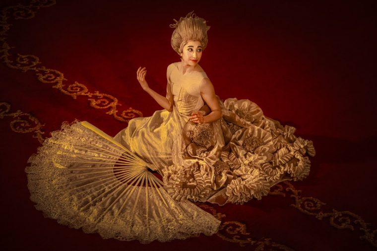 “Mucho se ha dicho sobre María Antonieta, pero en esta ocasión se optó por mostrar su lado más humano. El de una adolescente que pasó de vivir en el campo a instalarse desde el día de su matrimonio en uno de los palacios más lujosos de Europa como parte de una corte estricta. Veremos a la María Antonieta madre y también a la que influenció toda su época, desde el barroco esplendoroso del Palacio de Versalles hasta convertirse en el ícono de la moda que conocemos”, dice Jorge Gallardo. “Para el vestuario, trabajé con el concepto de extravagancia, usando grandes volúmenes en vez del artesanado con materiales y tejidos, lo que se refleja en la amplitud de faldas, estrechez de cinturas y abultadas pelucas”.