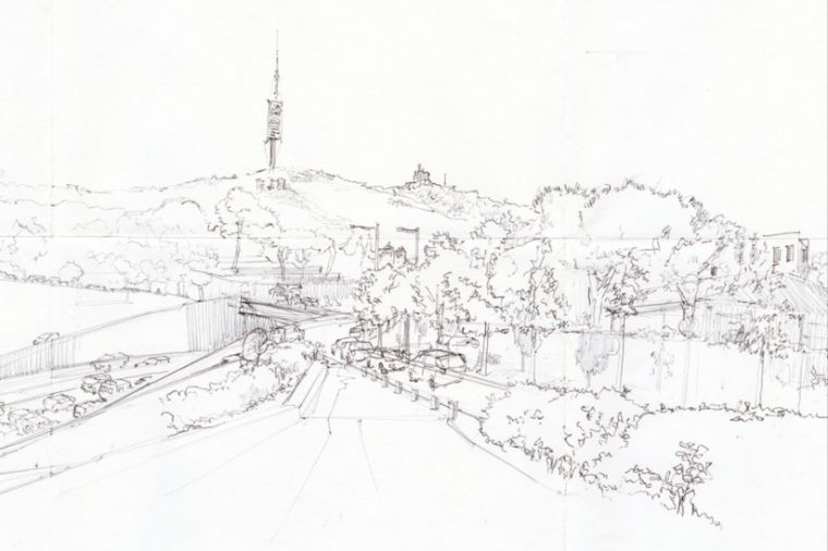 Bosquejos, láminas y videos componen esta muestra que ofrece una lectura de un recorrido en Barcelona.
