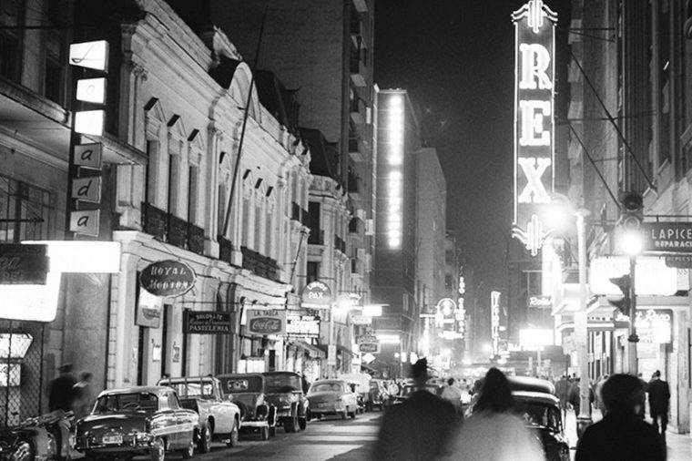 Santiago de noche (ca. 1955) de Antonio Quintana. Archivo Central Andrés Bello | Universidad de Chile.