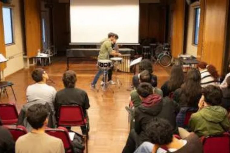 El percusionista y compositor estadounidense Casey Cangelosi liderará el viernes 30 de mayo un concierto con estudiantes justamente de percusión del Instituto de Música UC, que se organizarán como ensamble y dúos para interpretar obras suyas. También se escucharán piezas para solista.