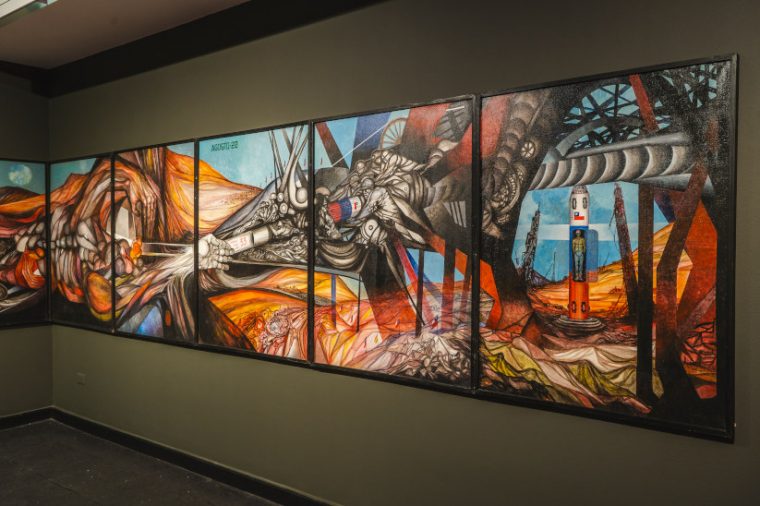 Entre otras, se exhiben las obras Los 33, La Leyenda del Hombre y El Cuarto Poder. La exposición invita a reflexionar en torno al ser humano y su historia de búsqueda. Se puede visitar en forma virtual en Lobarnechea.cl.