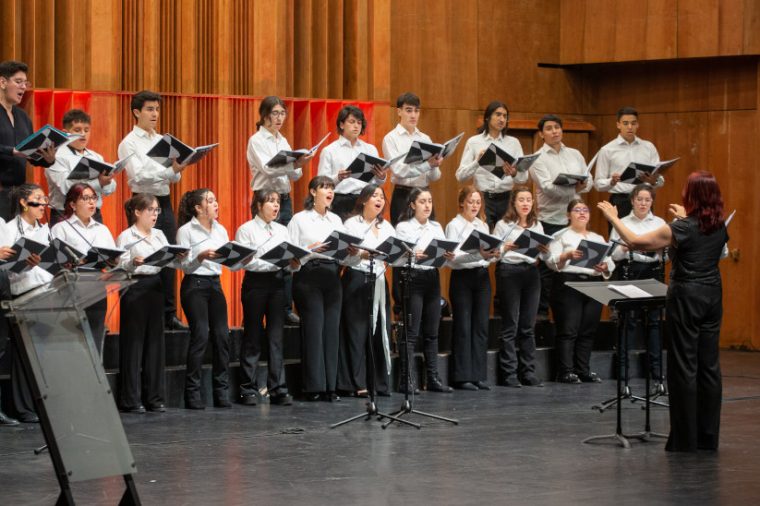 “Este programa es un repertorio desafiante, tanto desde lo técnico como en lo interpretativo y los estudiantes se están desarrollando muy bien, con ganas de aprender del lenguaje y de estos compositores”, compartió Cecilia Barrientos, directora del Coro de Estudiantes de FOJI.