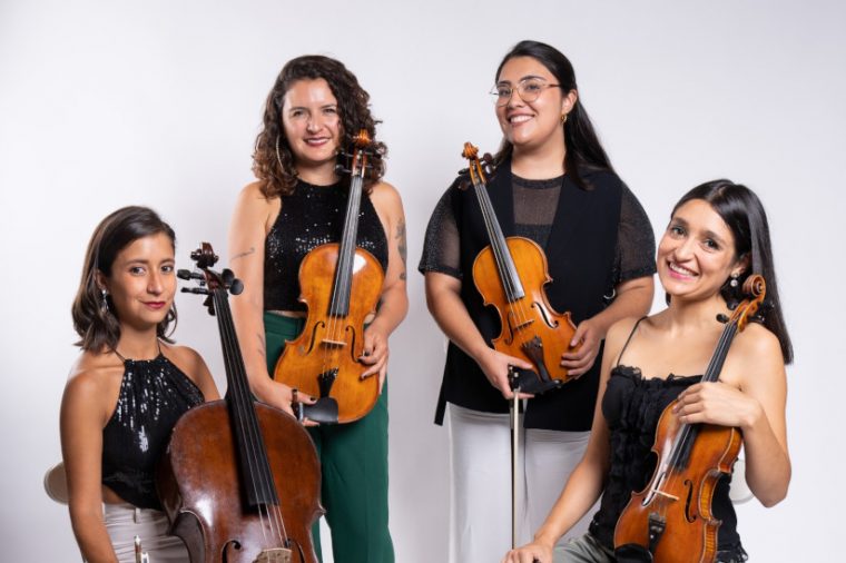 “Todas son obras muy actuales y toman elementos rítmicos de nuestro territorio”, anticipa Priscilla Valenzuela, violista del cuarteto, también integrado por Javaxa Flores (violín), Makarena Mendoza (violín) y Valentina del Canto. Fundado en 2017, el grupo ha destacado por una versatilidad que les ha permitido interpretar repertorio de cámara en numerosas ciudades de Chile y el extranjero, pero también colaborar con múltiples artistas de música popular. Su discografía incluye el EP Aeternam (2022) y el álbum Compositoras chilenas (2024).