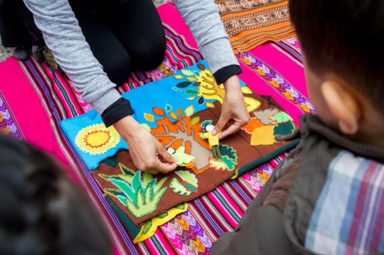 de juguetes y artefactos que estimulan la creación de cuentos y fomentan la