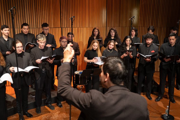 Coro de Estudiantes UC y Felipe Ramos Taky en concierto previo. Foto: Instituto de Música UC.