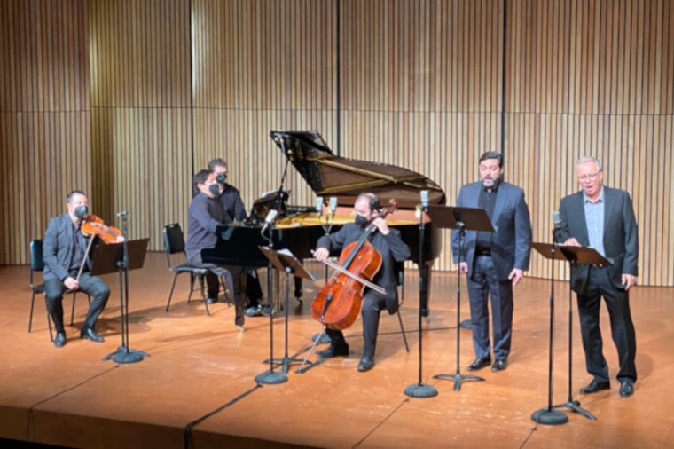 Con las voces de los profesores de Música UC Claudia Pereira, Rodrigo del Pozo y Patricio Sabaté, más Gonzalo Beltrán en violín, Sebastián Mercado en violonchelo y David Inzunza en piano, este concierto se acaba de grabar en el Centro de Extensión Oriente y será estrenado a las 19:00 horas del martes 8 de junio en Musica.uc.cl.
