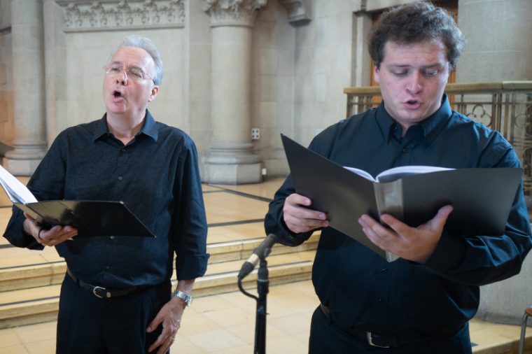 El tenor Rodrigo del Pozo y el barítono Ismael Correa, profesor y alumno en el Instituto de Música UC. Foto: Música UC.
