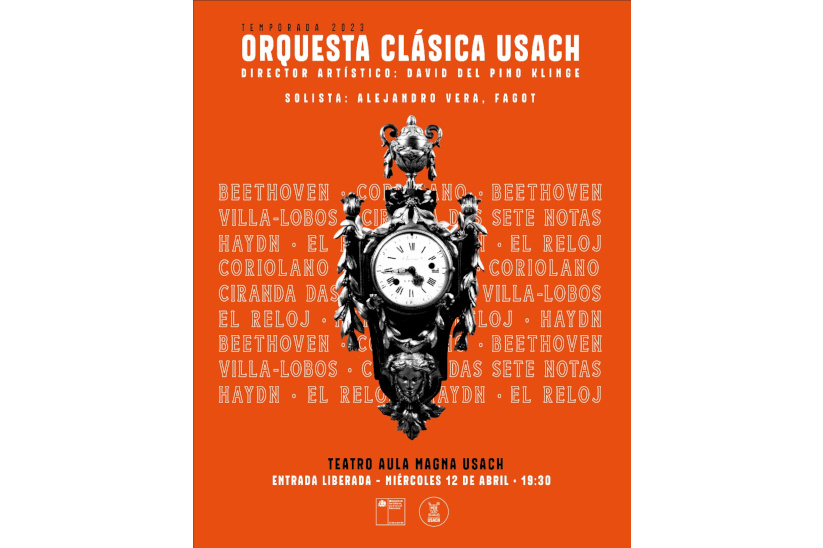 Con la dirección de su titular David del Pino Klinge, la Orquesta Clásica Usach interpretará el miércoles 12 de abril la Sinfonía El reloj de Joseph Haydn y la Ciranda das sete notas de Heitor Villa-Lobos, con el fagotista Alejandro Vera como solista, además de la Obertura Coriolano de Ludwig van Beethoven. El concierto se realizará a las 19:30 horas en el Teatro Aula Magna Usach, ubicado en Víctor Jara 3659, Metro Usach y el acceso es liberado.