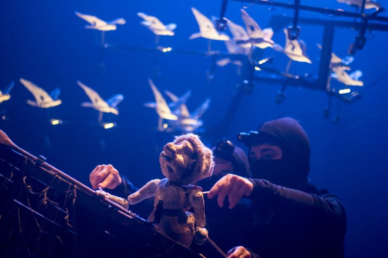 Un pescador artesanal con su bote y sus redes se enfrenta cada mañana al viento y el mar. En tierra, dos viejos colegas tejen redes y esperan. Todos son marionetas de papel y cinta adhesiva, manipuladas por cinco actores que, sin palabras, van retratando el heroísmo de este oficio en la inmensidad de la naturaleza. Un minucioso trabajo de la compañía Silencio Blanco, quienes articulan sus montajes desde la observación e investigación en terreno, profundizando en la vida de personas sencillas y oficios solitarios.