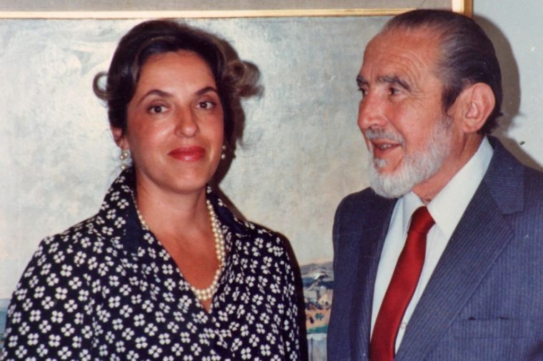 Karen Plath Müller Turina y su padre, Oreste Plath, en 1985. Foto: Archivo del Pueblo | Sociedad de Folclor Chileno.