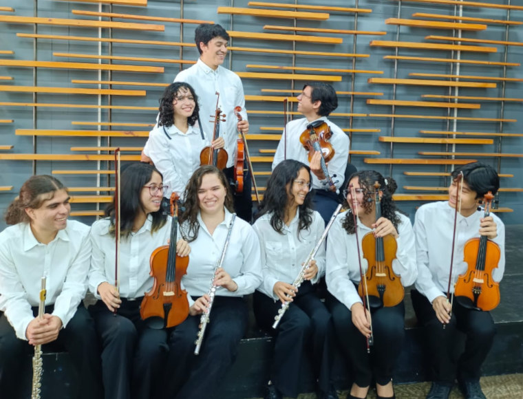 Orquesta Sinfónica Juvenil del Liceo Siete, que dirige Paola Zamora Pérez.