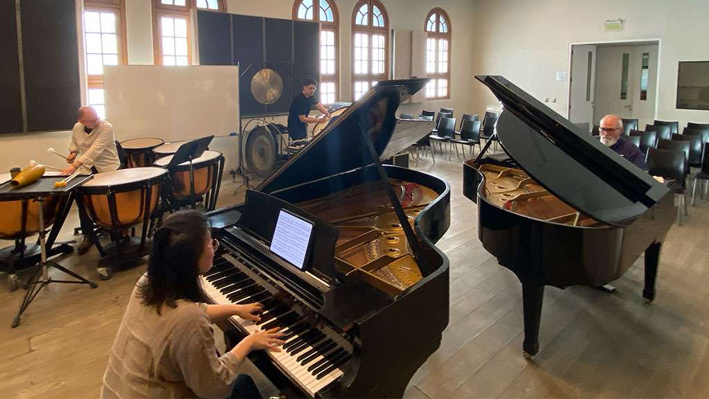 También se refiere a esta combinación el profesor Joaquín López. «Es un formato fascinante porque combina dos familias instrumentales con enorme potencial rítmico, armónico y tímbrico. Los dos pianos aportan densidad, resonancia y una gran capacidad de articulación armónica, mientras que las percusiones amplían el espectro de colores y texturas, desde lo más etéreo hasta lo más contundente. En conjunto, se crea un equilibrio muy especial entre precisión rítmica y libertad tímbrica. Es una formación que exige escucha mutua y una coordinación muy fina, ya que los cuatro intérpretes funcionan casi como un solo organismo. Obras como Música para una tarde de verano o La Consagración de la primavera muestran todo ese potencial», explica el percusionista.